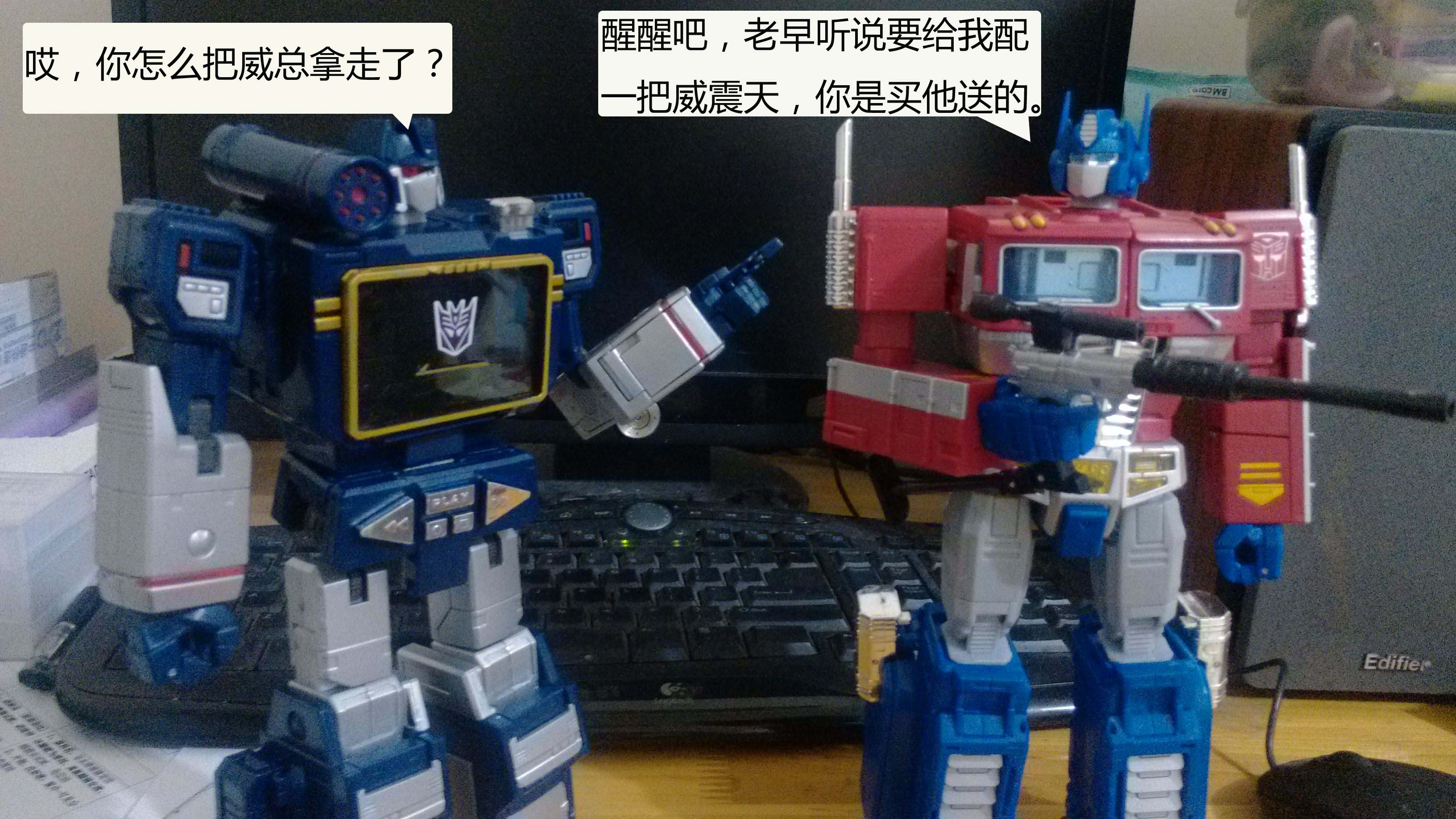 好久没有做小剧场了。主要原因是因为孩子太小,现在还不能和她一起玩变形金刚,现在我家宝宝就是小破坏狂啊。变形金刚玩具大部分都要收起来,有些第三方的玩具还特别尖锐,也怕伤到她。