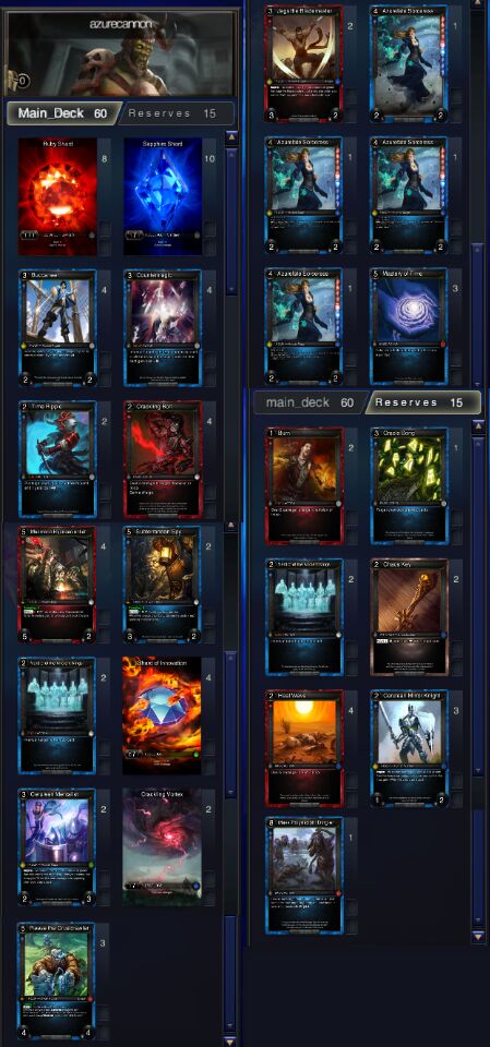 Thedeck is about doing direct damage with azurefate. The big troops can all betunneled on turn 2 then surface with azurrfate inspire direct damage. I protectmy troops with countermagic and verdict. I can also deal extra damage usingtetzot’s charge power for 6. On average it creates a 4/4 rock elemental.