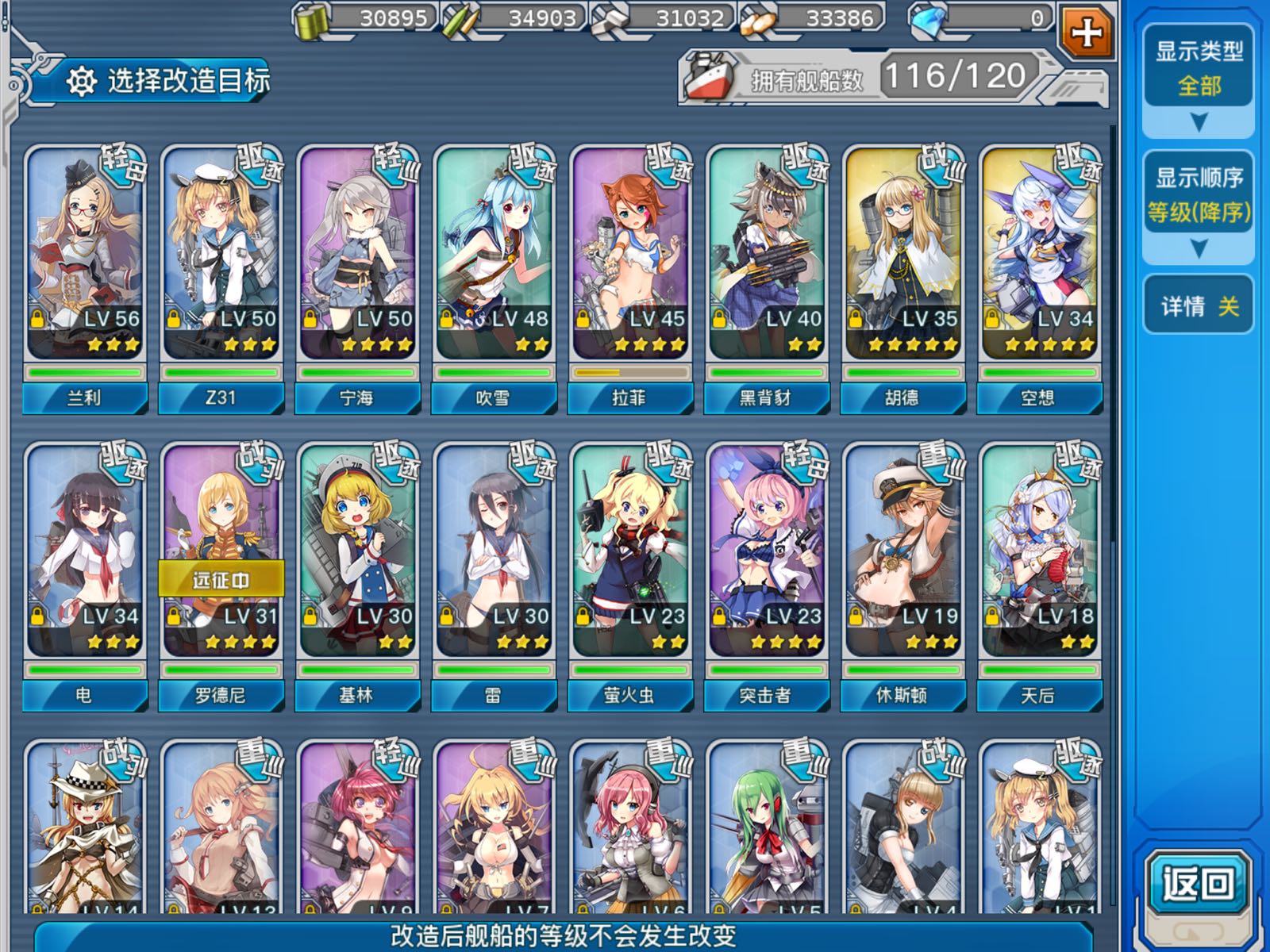 现在有雷,拉菲,z31,电,吹雪,黑背豺,基林,等级核心都够