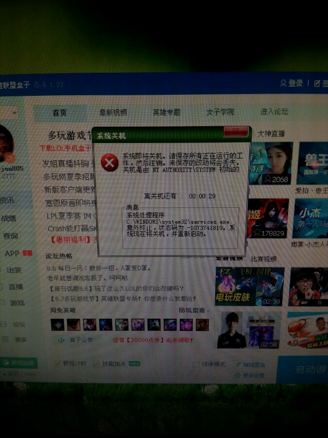 真心求教。为什么最近玩lol总是进去一分钟就自动关机啊?什么情