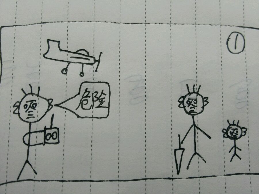有一天在飞直升机,突然失控,向左侧滑,眼看就要装上一个3岁小孩了,马上把油门关掉,原来会掉地上,突然有人用竹竿把它在半空中打断了,首次炸机
