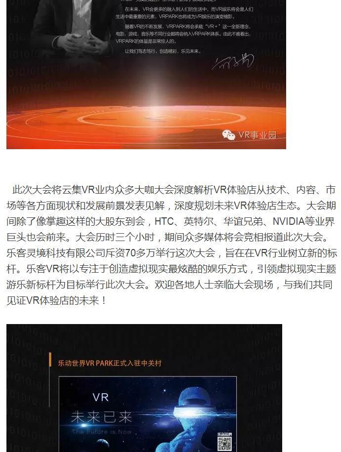 乐见未来VR Park2016生态大会启动,与您一起预见未来!!!