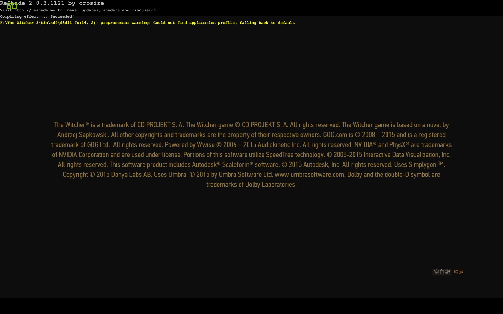 求助!!!reshade的设置问题!!!falling back to default