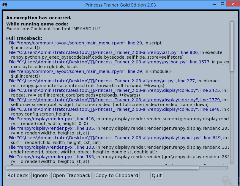 Princess_Trainer_2.03-all 打开游戏出错,出现类似文本框的东西,求助