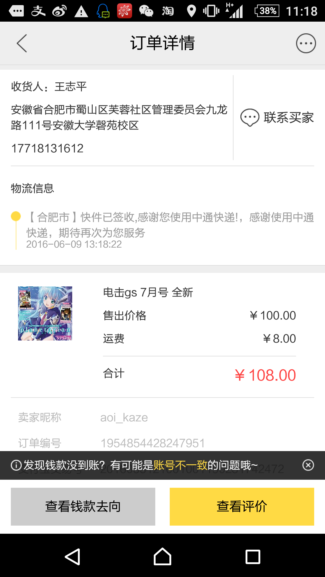 订单运单号这些信息还是打码比较好吧[阴险]