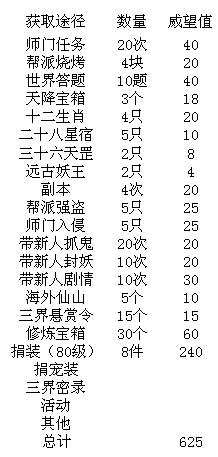 鬼多抓几轮,一轮10,翻倍20,存点宝宝装备,副本可以刷低级的,没物品但是有威望,带小号封妖,带学徒剧情,还有吃几个海外仙山,都做完肯定够