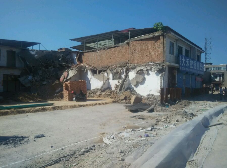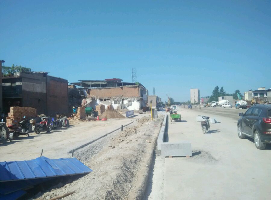 有的地方在拆迁,有的地方在砌盖文化墙,有的地方在弄隔离带的侧石,进度不一,各忙其事。