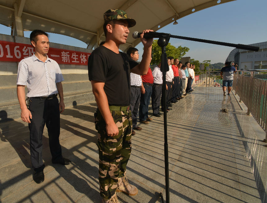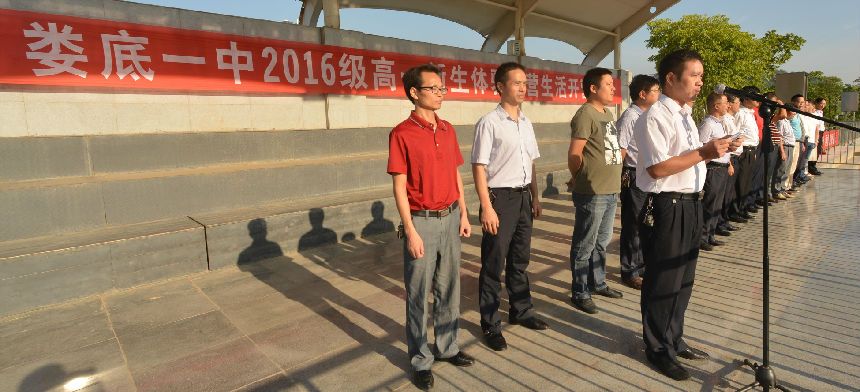 8月29上午,娄底一中2016级高一新生“体验军营生活”军训开营仪式在田径场隆重举行。