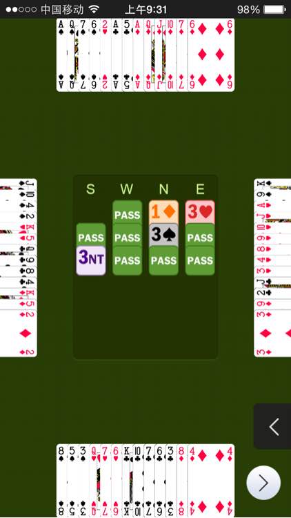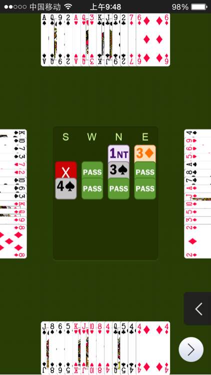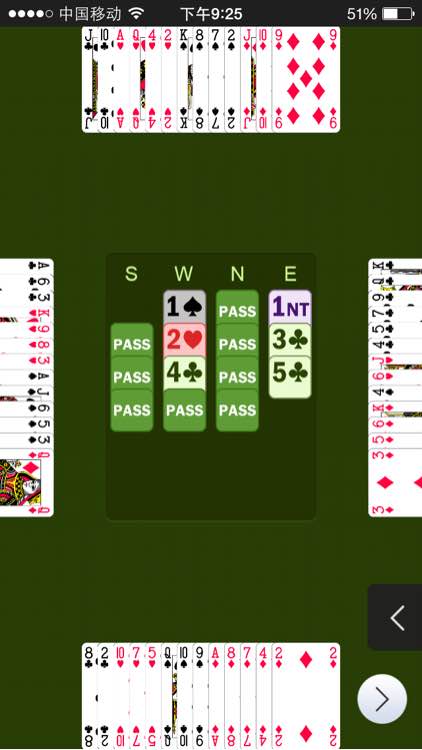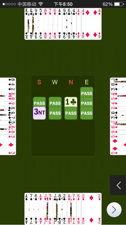 今天牌打的很细,但感觉不好。这是赢到的一把。首攻S,4S+1C+1H+1D还差2墩,绞尽脑汁才打成。