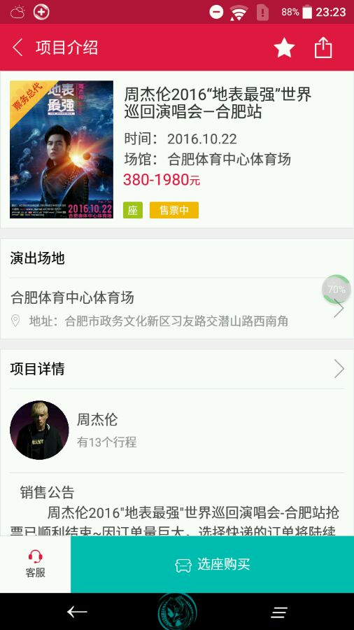 周杰伦合肥演唱会门票卖完了