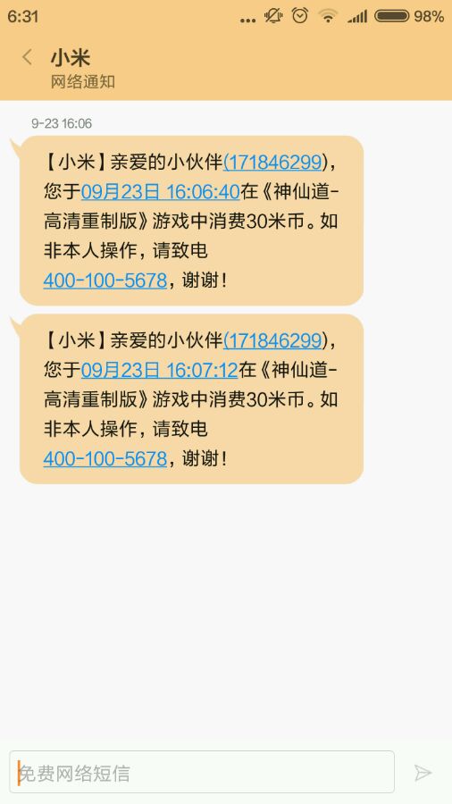 那是小米客服,只负责是不是你本人消费,游戏里给不给东西,管不了