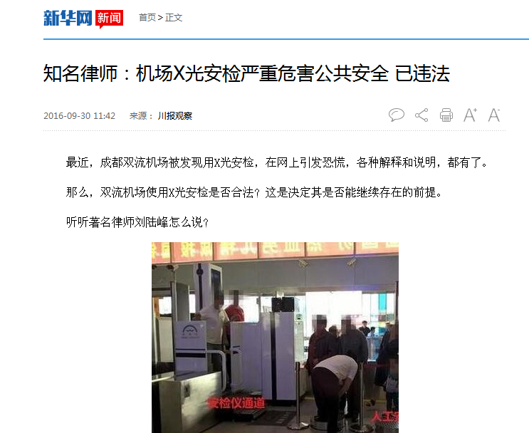 知名律师:机场X光安检严重危害公共安全 已违法