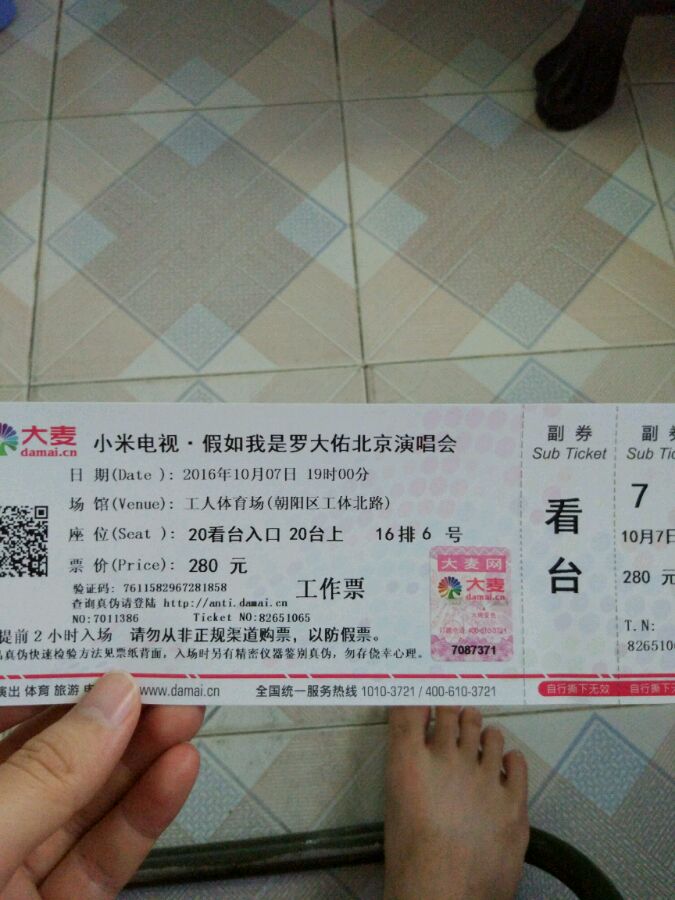 多张假如我是罗大佑280的票