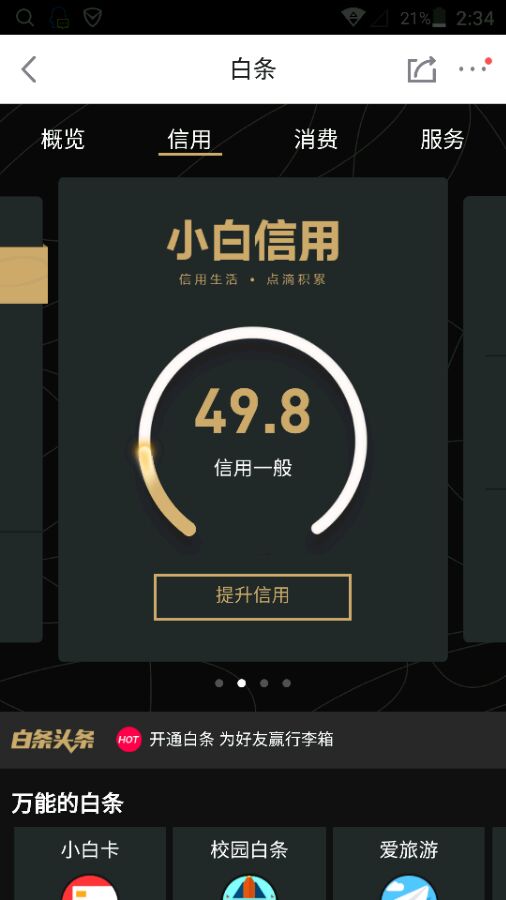 感觉小白信用跟额度联系不是特别大 只是开始会高点 后期还得看白条的使用次数和记录才能再提
