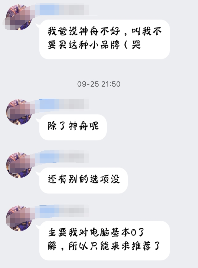 我一个很熟悉的人因为上了大学了,准备换台电脑,我给她推荐了一些,然后今天…我惊呆了…