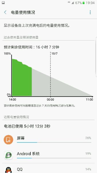 看图,90的电,到67才用一个小时啊,难到就我一个人有这个问题吗?这续航只能用2~3个小时,问题真大,发热严重,待机都有些热。。。
