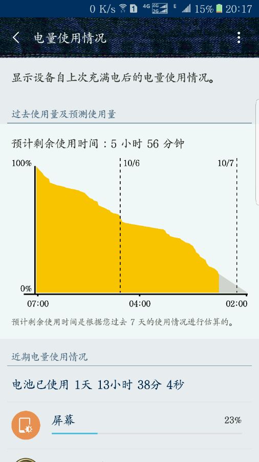 我玩游戏、看视频、微信、QQ、网页、贴吧、微博什么的,断断续续从早上八点半用到晚上十二点多睡觉,亮屏时间大概五个多小时,算不上多好,勉强中度使用够一天吧。。