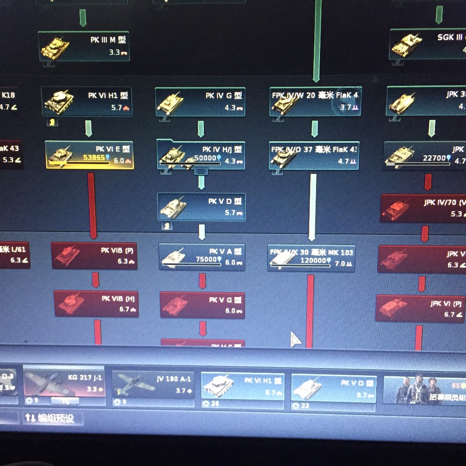 德系把5.3那个坦歼打出来,然后虎h1豹D坦歼打5.7,车组可以上专家,然后6.3可以排一组但是会去6.7,也可以5.7一直打到6.7上虎王H虎p豹二打6.7