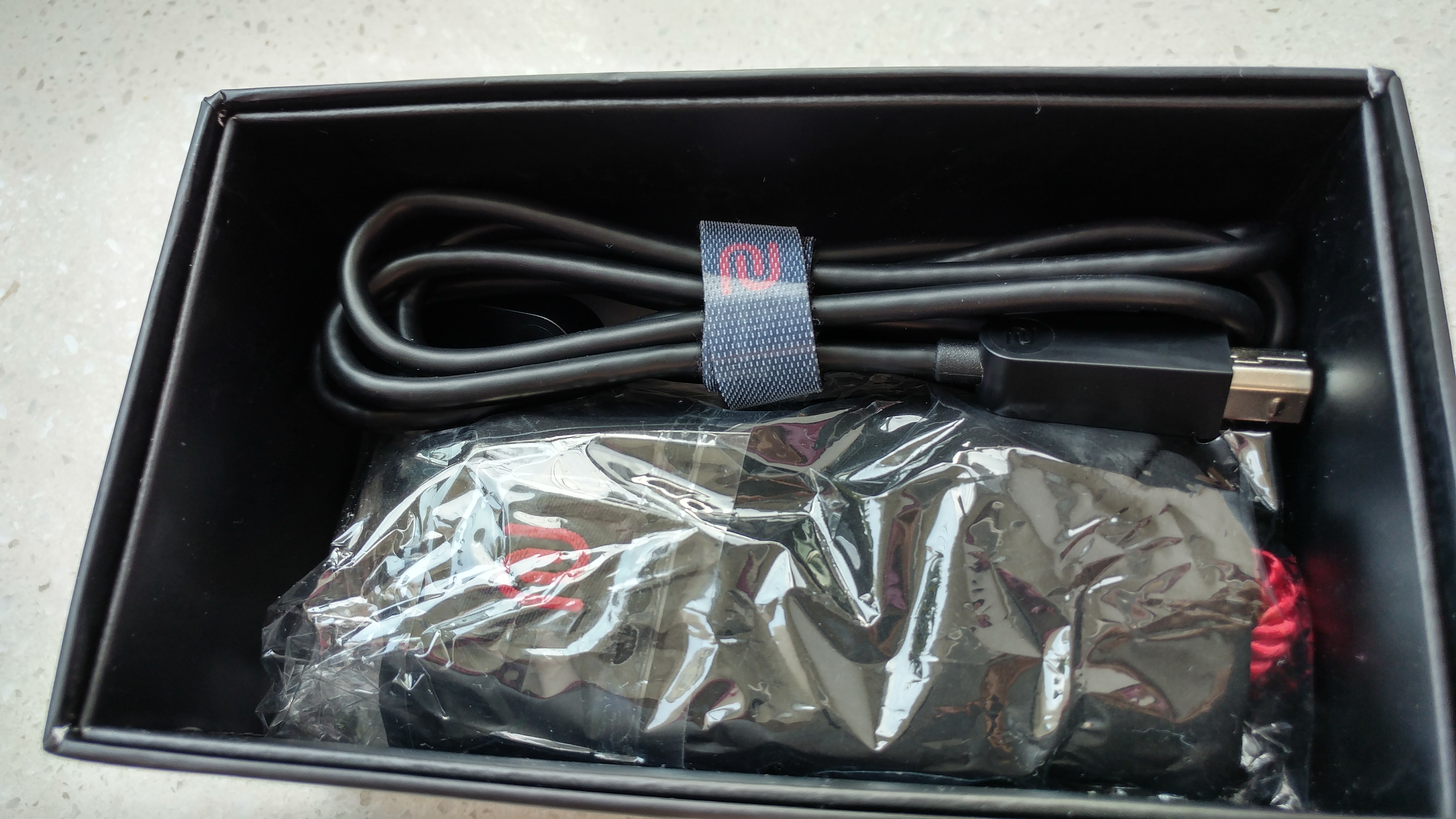 拿下声卡这一层我们还可以看到ZOWIE很贴心地配备了专用收纳袋。其他的还有电脑连接线、多国语言说明书等等。连接线自带绑线带,便携性非常高。