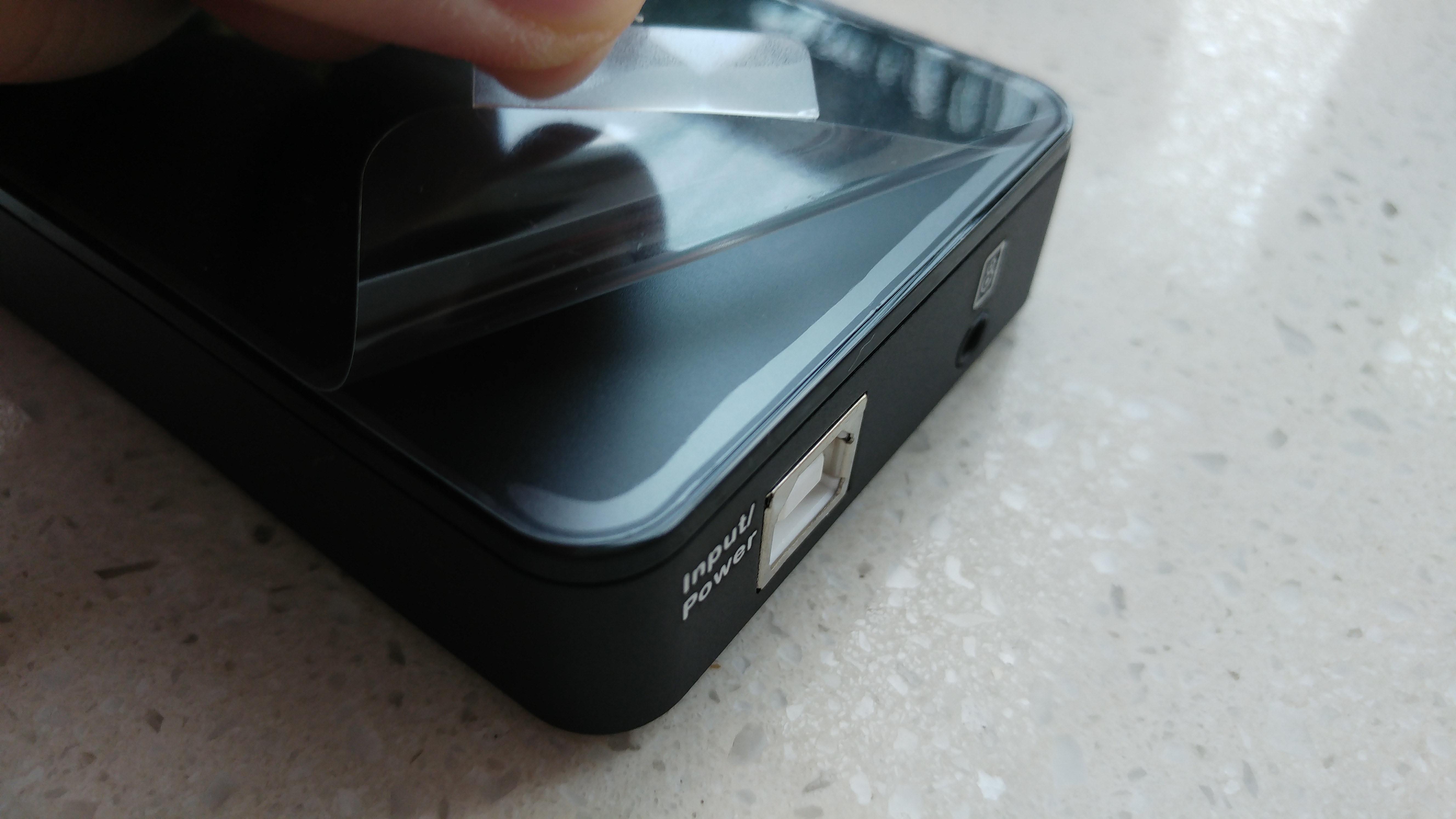 值得注意的是底部产品信息是一个材质类似于ZOWIE鼠标垫的软质防滑材料,可以起到很好的防滑作用,而且声卡出厂自带双层保护膜,可以有效的保护屏幕。