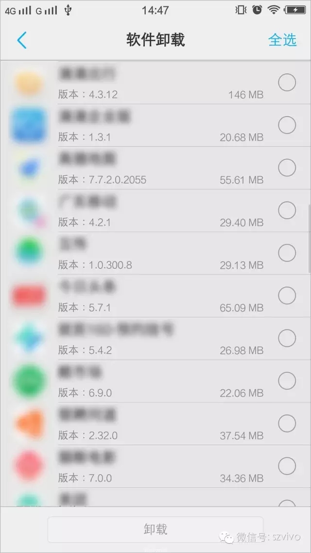 如果您对一些App源源不断的骚扰实在无法忍受,想卸载这些App,但是App数量又比较多,嫌在桌面卸载App麻烦,这时您可以进入“软件卸载”批量卸载App,在列表中勾选您要卸载的App,然后点击底部的“卸载”按钮即可将这些App一键批量卸载,省去在桌面一个一个点击“x”卸载的麻烦。