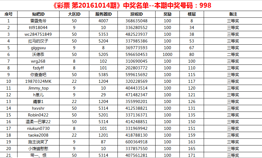 【公告】《彩票第20161014期》中奖名单