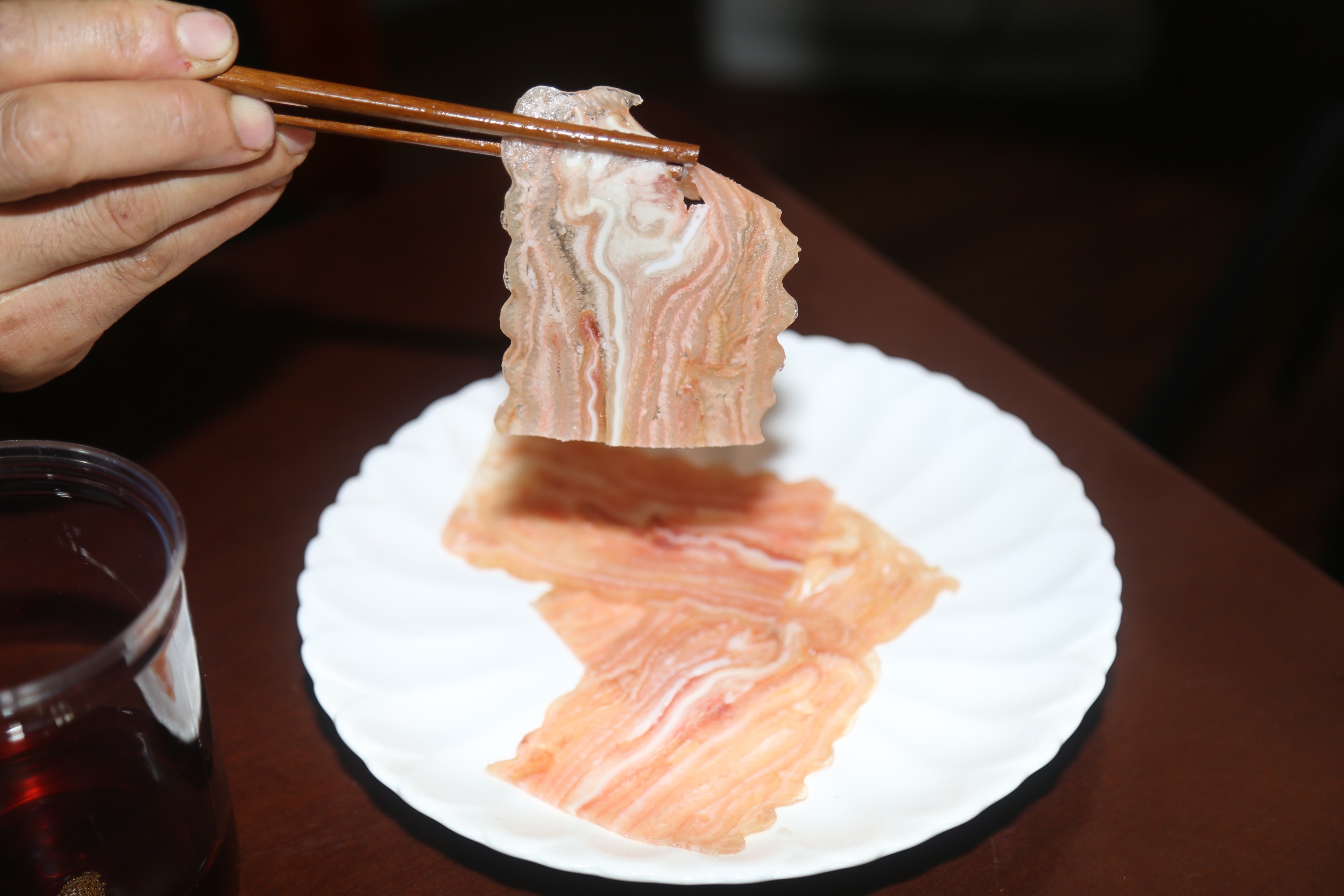 卤好,压在半成品合子里。第2天就可以切成这样的拉