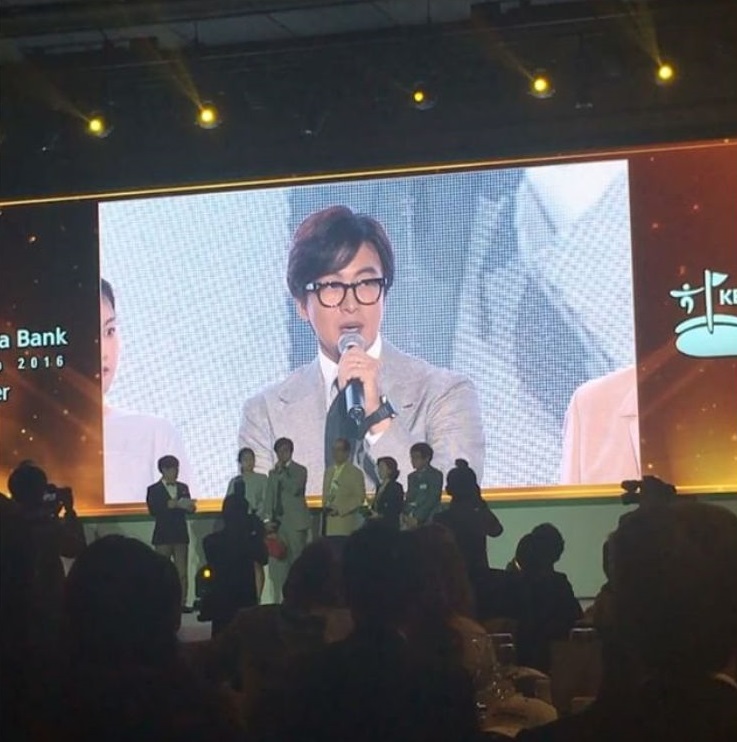 LPGA韩亚银行高尔夫球锦标赛本周在韩国开战, 在职业/业余配对赛上,勇俊他们组勇夺配对赛冠军。