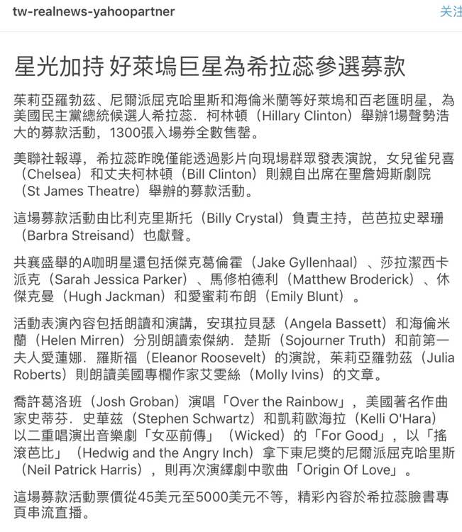 台媒的报道,为希奶奶站台的大伽很多