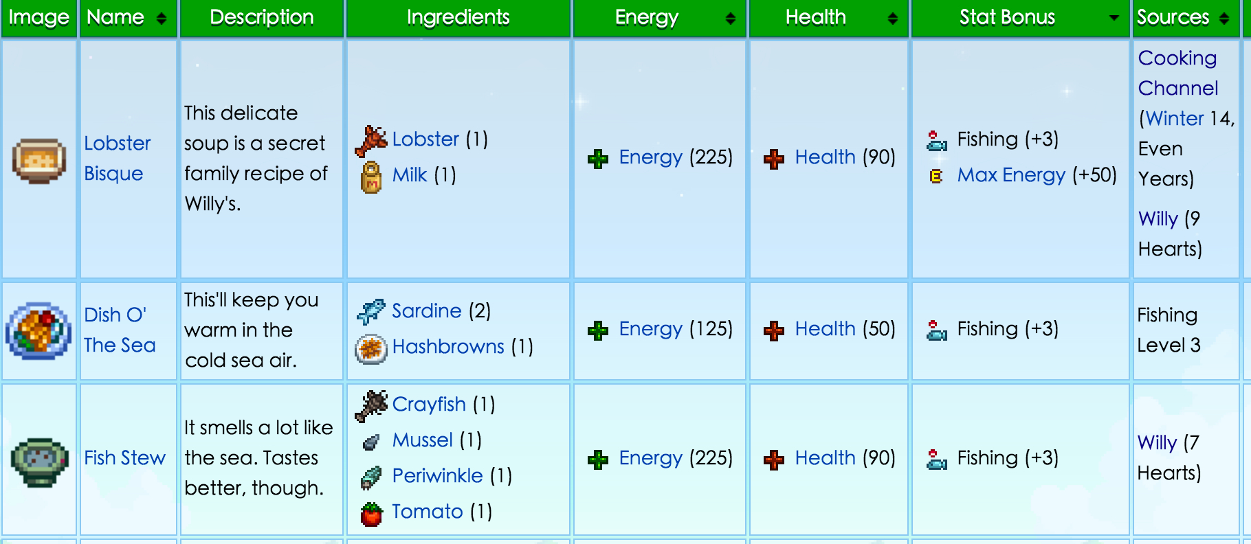 最容易获得的是图上第二个,本体食谱钓鱼三级获得,材料食谱酒馆直接买,沙丁鱼夏天以外海钓,还要用到土豆和油