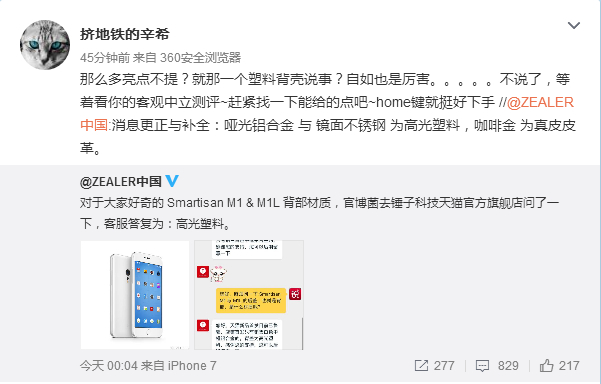但是zealer这也太明显了吧!别的科技媒体都不乏溢美之词的时候,他们缺酸溜溜的只提到塑料背壳。。。。我也是越发佩服自如胸了~咱要黑能不能做得高级点,不要那么做作得像妖艳贱货好吗?看他们测评有什么话说!
