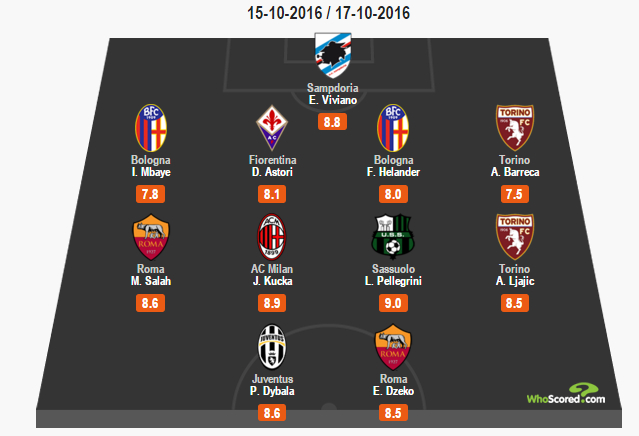 WhoScored本轮最佳阵容,好多熟人……