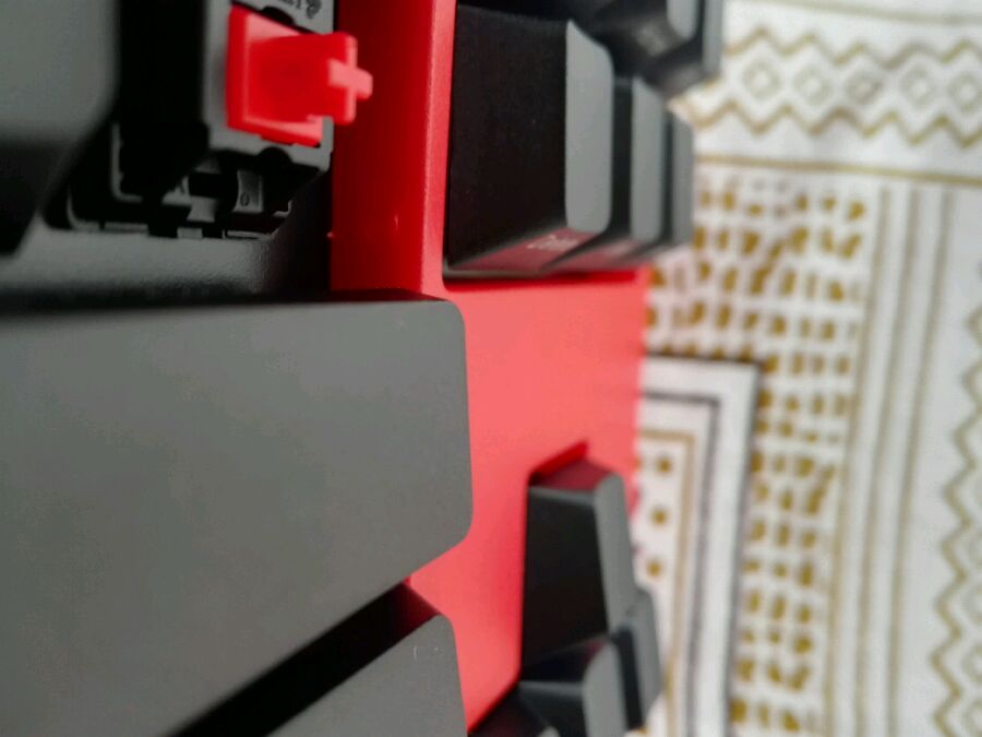 刚入了一把,没想到有一个注塑点竟然很明显,带着毛刺,被我挂了挂才掉,拔出键帽,一看壳子都透了,就像一个小洞。。。