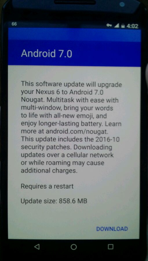 Nexus 6官方OTA升级Android 7.0