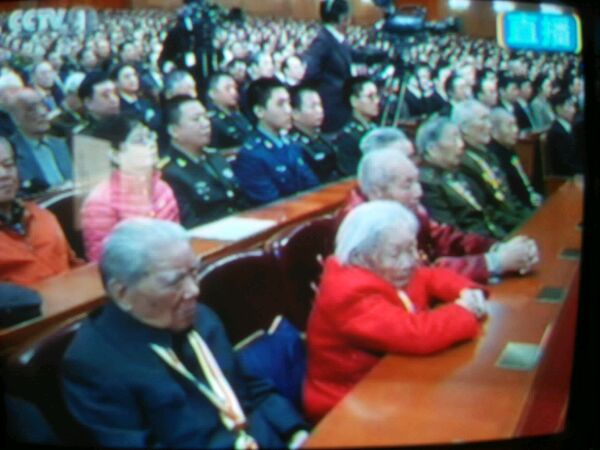 参加会议的红军老战士67名,平均年龄92岁,最大年龄王定国,二十二岁参加红四军,是红军宣传队战士。