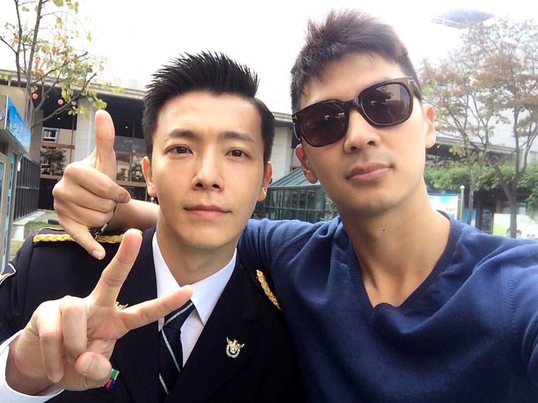 于正在服兵役中的SJ成员李东海的合影~~(ps:李东海的墨西哥快餐店超好吃啊!好想念)
