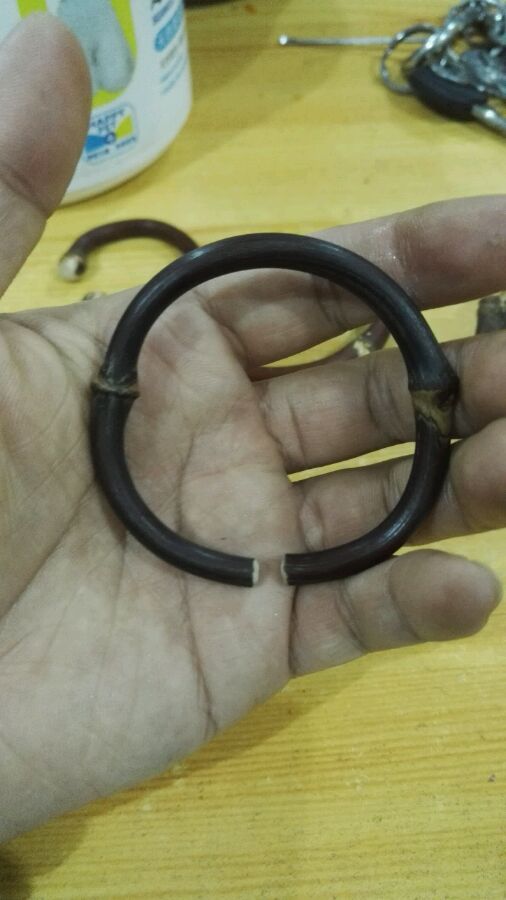 最近迷上鸡血藤镯,买镯子时候,顺便买了一些原藤,准备自己试试,自我感觉还不错,弯出来一些还凑合的,有的有瑕疵,有的没瑕疵,话不多说,上图,自玩阴皮藤镯