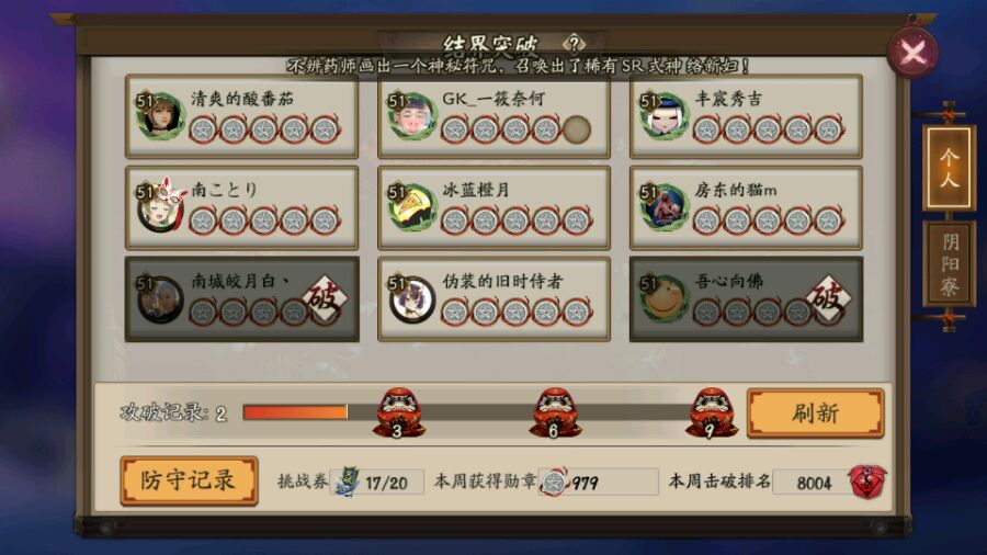 式神很多快20的,我只给两个配了御魂,其他的等25鸡之后再想想怎么配