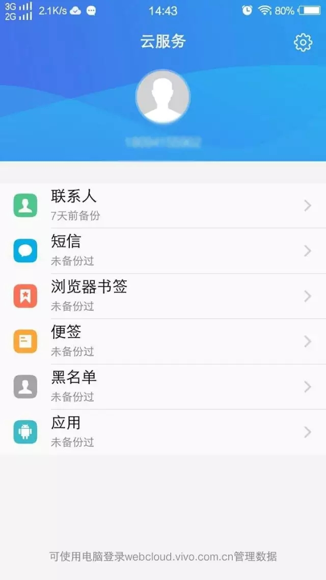 2、通过vivo云服务备份和恢复联系人及短信息