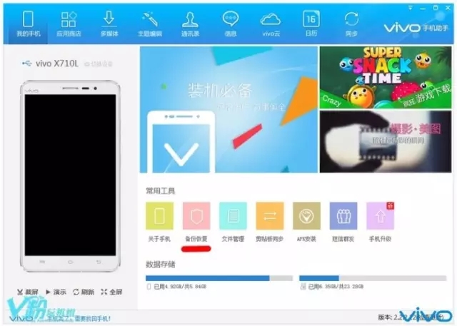 3、通过vivo手机助手进行备份和恢复