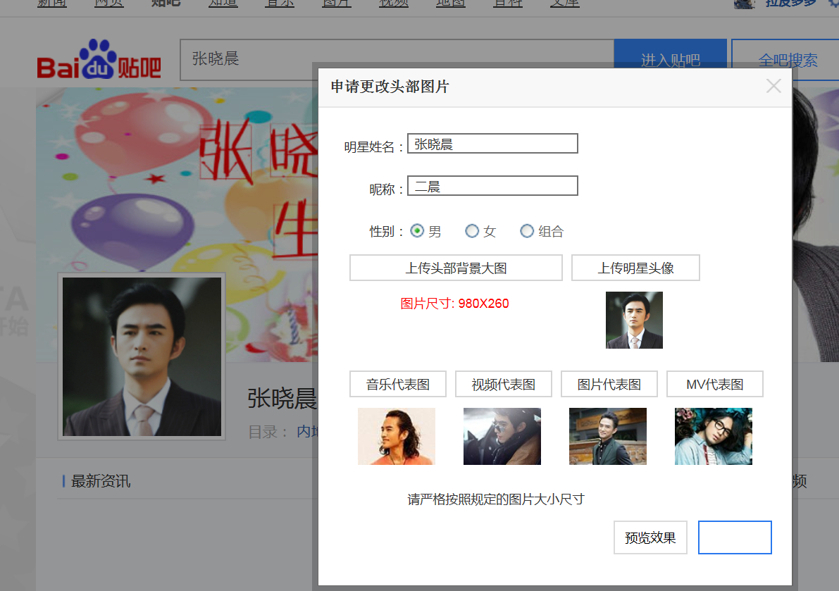 尺寸是 版头 980/260 头像156/156
