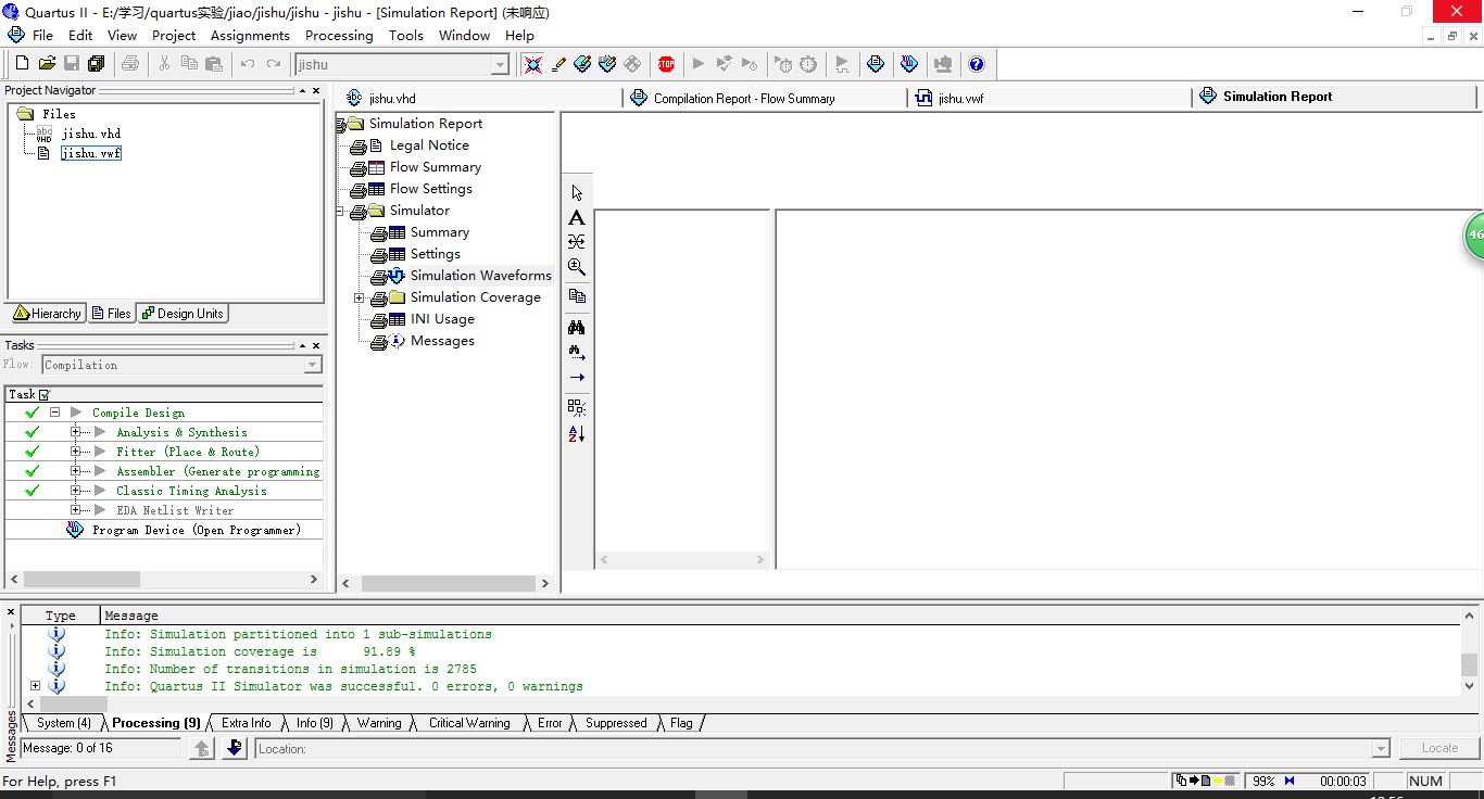 (2)于是lz就换了一个,用32位的,没想到真的通过编译了。贼高兴了。结果,卡死在simulation report上了。上图