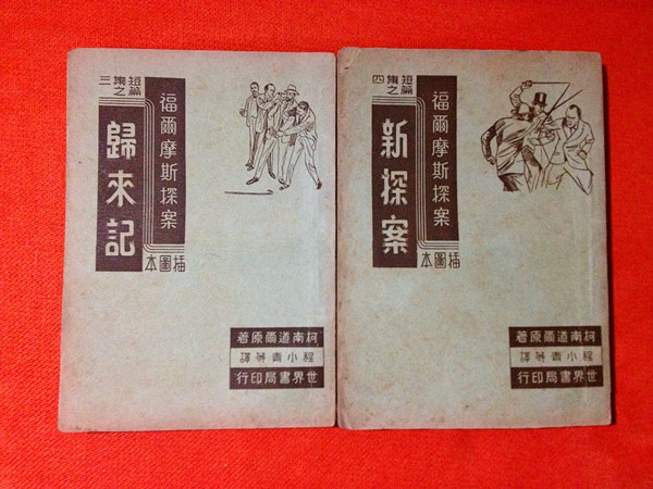 程小青翻译的侦探小说很多,其中包括《世界名家侦探小说集》(大东书局版,顺便纠正雨轩风玲网友的一个小错误,这套书不只两册)、《斐洛凡士探案》系列(世界书局版)、《陈查礼探案》系列(世界书局版);《圣徒奇案》系列(世界书局版);《福尔摩斯探案大全集》(世界书局版)、《福尔摩斯探案短篇集》(世界书局版)、《短篇侦探小说选》(广益书局版)等等,都是值得一收的书目。谈到程小青的翻译作品,恐怕其中最知名的就是《福尔摩斯探案》了,民国时期出版的《福尔摩斯探案》有很多种版本,可以说是民国时期出版社最乐意出版的侦探小说书目了,貌似这一奇特现象一直到现在还是如此。初步统计一下,当时有世界书局、中华书局、上海侦探小说社、启明书局、上海大通图书社等多家出版社出版过多种不同版本的《福尔摩斯探案》,如果您的经济条件许可的话,当然可以全部都收集,但如果手中的钱有限,还是请认准程小青商标,谨防假冒。