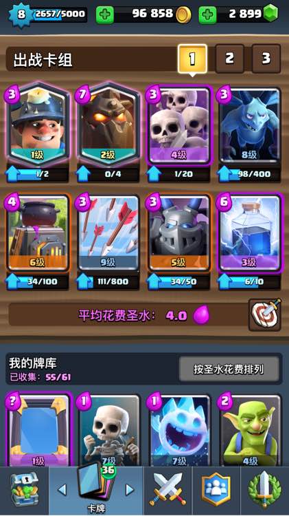 入坑正好一个月,终于上了3000,氪了所有的特惠礼包,忍不住啊。今天运气也是不错,正好商店刷出个紫卡宝箱,给了我7张大闪,昨天还是一级的(劈不死一级冰法,八级火枪,四级女巫