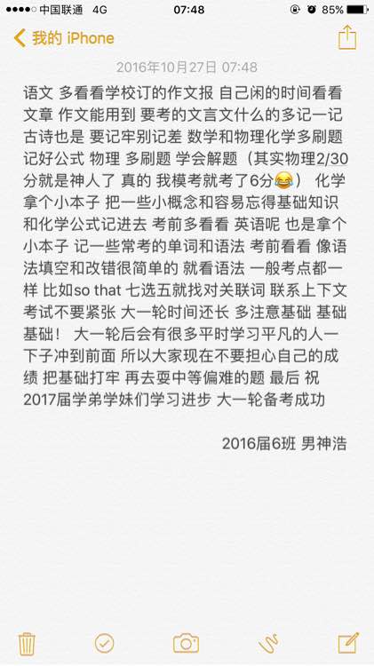 2017届学弟学妹看这里 大一轮要夯实基础 不要在意自己现在成绩多差 大一轮后你的努力会有收获的 大家加油!