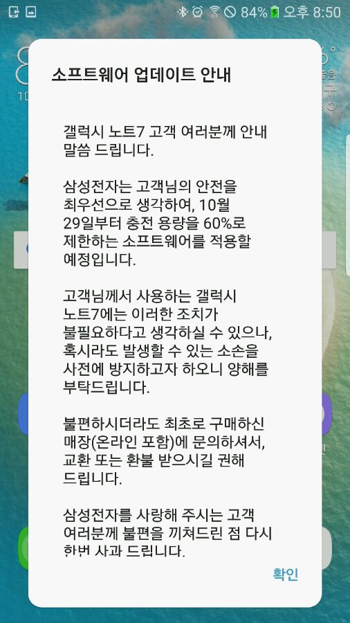 在韩国,这已经不是第一次把note7电量限制到60%了,第一波机器换机时就有过。。