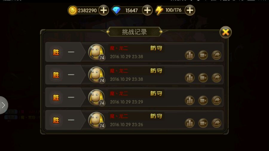 今天竞技场防守连续赢了4场,分享视频到公会郁闷了。4场的视频都不对,全是我输了…明明我是防守,视频也成了进攻。上次有一回了,这回一下4场都不对,就贴了一场的图,要不太多了。求解释!!!求解释!!!求解释!!!!还填表不?
