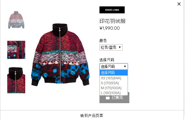 印花羽绒服M码