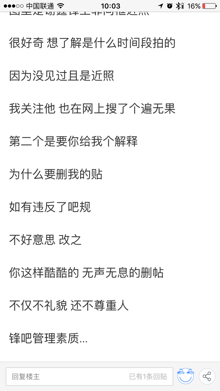 回复 驹锋当道 :锋吧其他删帖一般都会给解释,也就关于恋情方面是无条件,并不是针对你,真的不要放在心上[小乖]