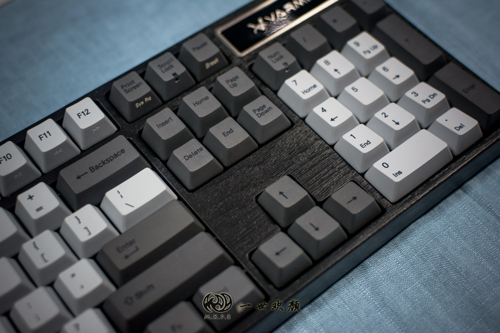 低调沉稳的木纹外壳搭配上深灰浅灰的复古键帽,可以说是一见钟情